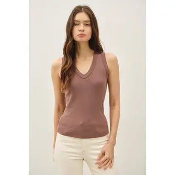 Slip into effortless style with our Ribbed V Tank—a wardrobe essential that works as hard as you do. Crafted from soft, breathable cotton with a flattering v-neckline and textured ribbed fabric, this tank layers beautifully or stands alone. Perfect for casual days, layering, or whenever you need a reliable piece that feels as good as it looks. Simple, versatile, and always in rotation.